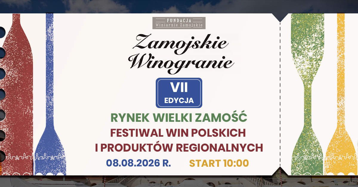 Zamojskie Winogranie to letni festiwal, który łączy degustacje polskich win, regionalną kuchnię i miejską atmosferę w sercu Zamościa.